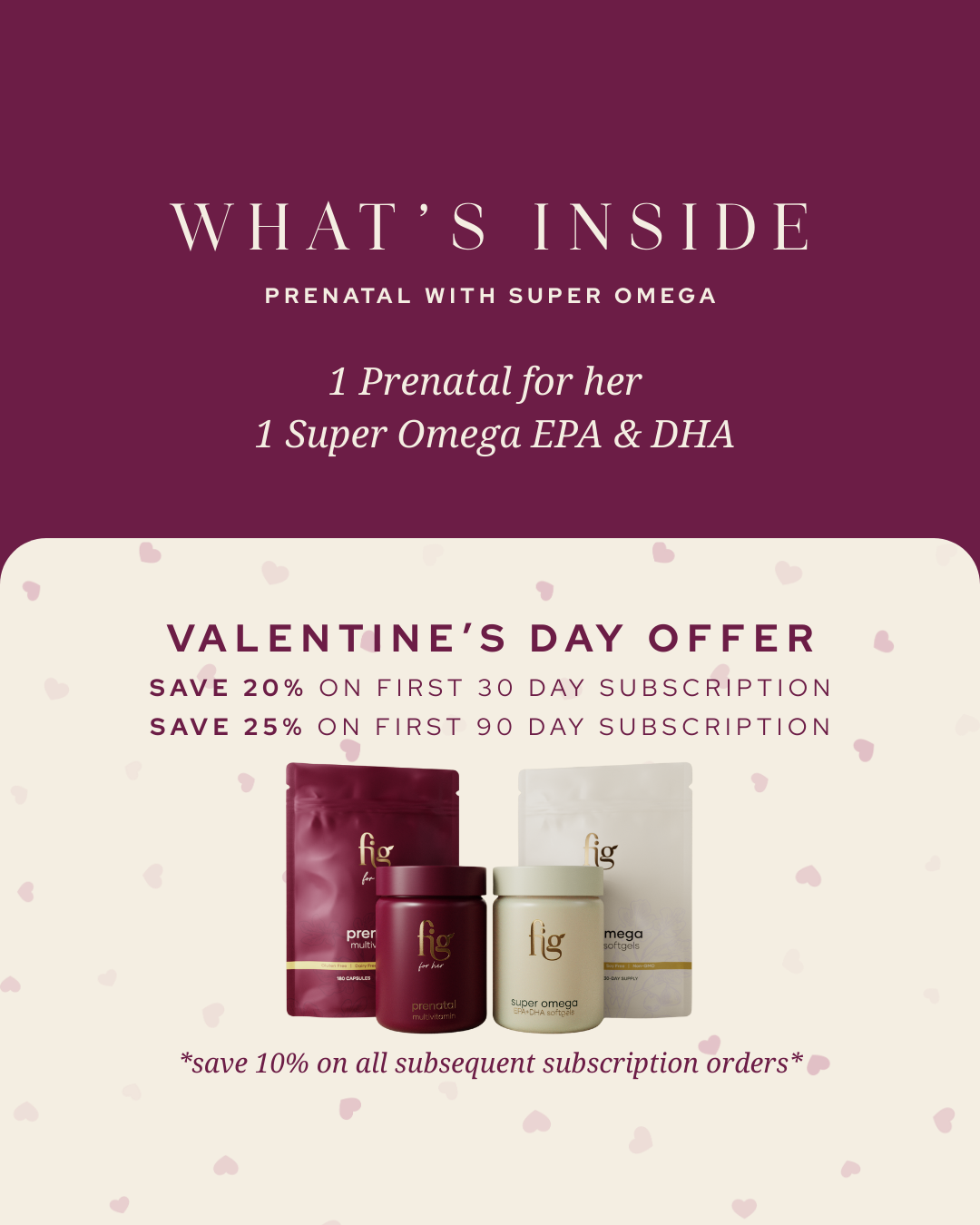 - 1 Fig for her jar: a beautiful frosted glass jar designed to fit 180 capsules perfectly for refilling your monthly supply.