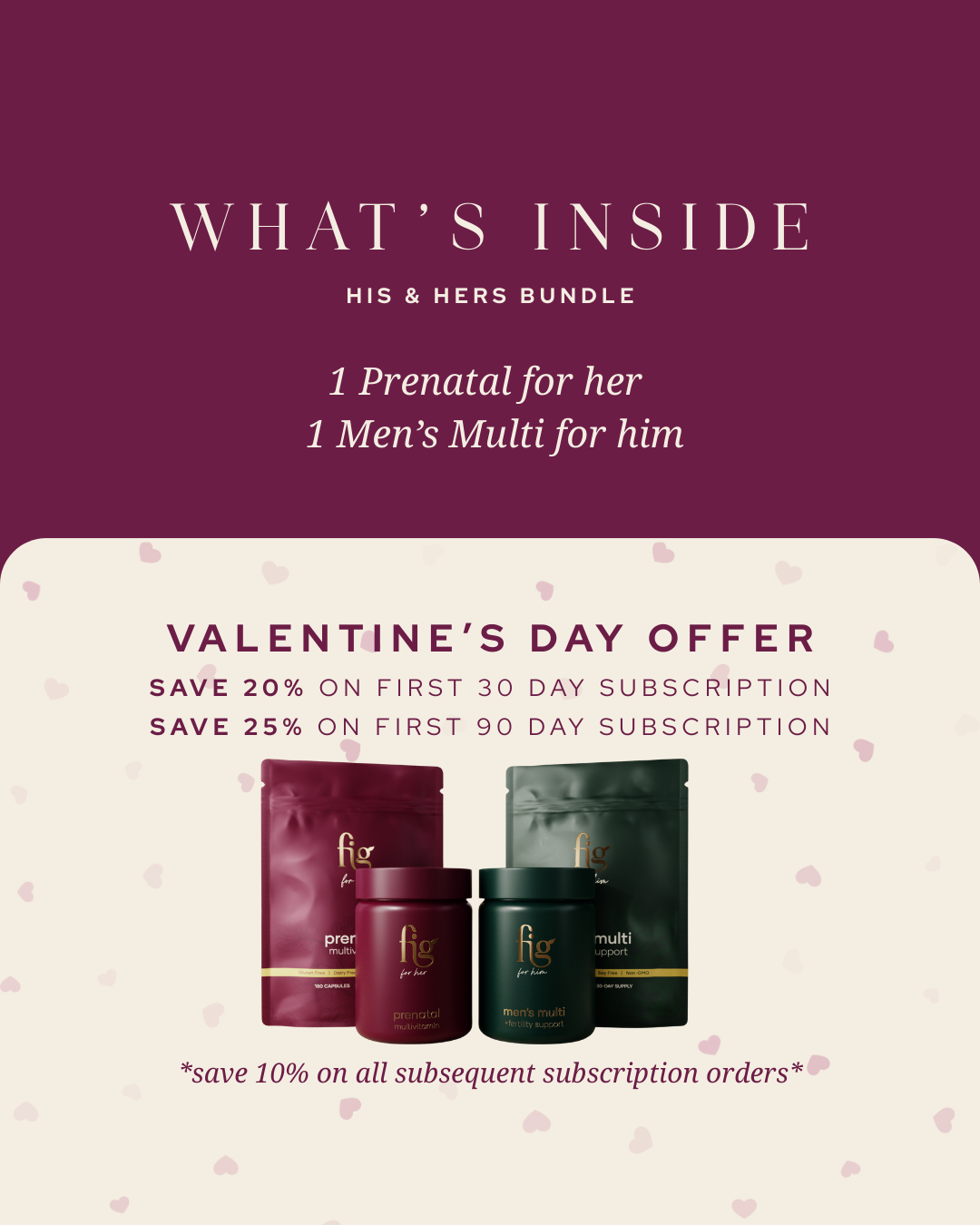 - 1 Fig for her jar: a beautiful frosted glass jar designed to fit 180 capsules perfectly for refilling your monthly supply. *subscription only*